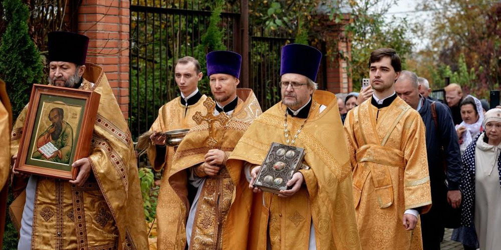 По завершении Литургии духовенство и прихожане совершили крестный ход вокруг храма, неся святые иконы и знамена, с чтением Евангелия и молитвами о мире, здравии и благословении всех живущих.