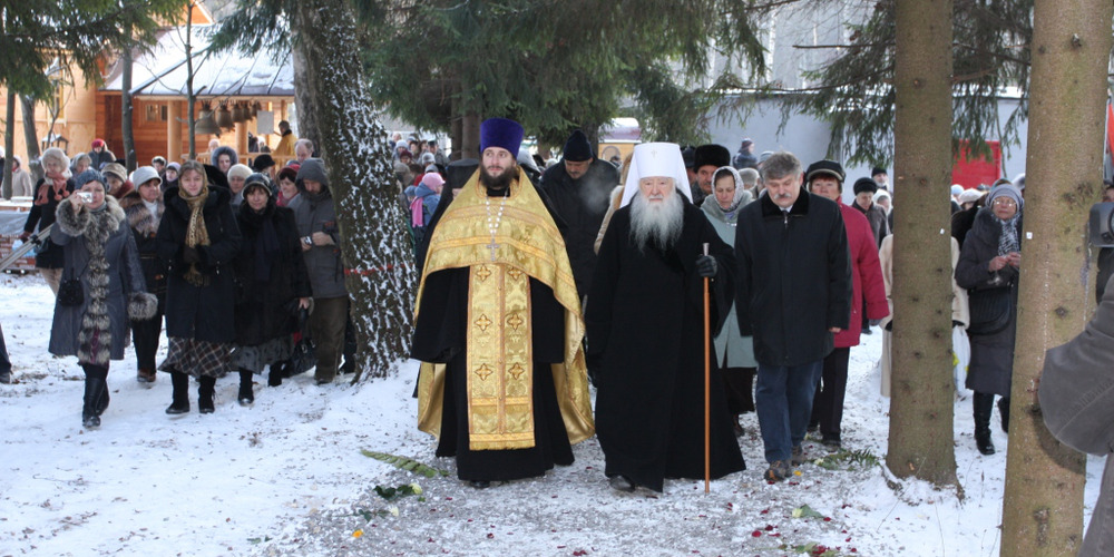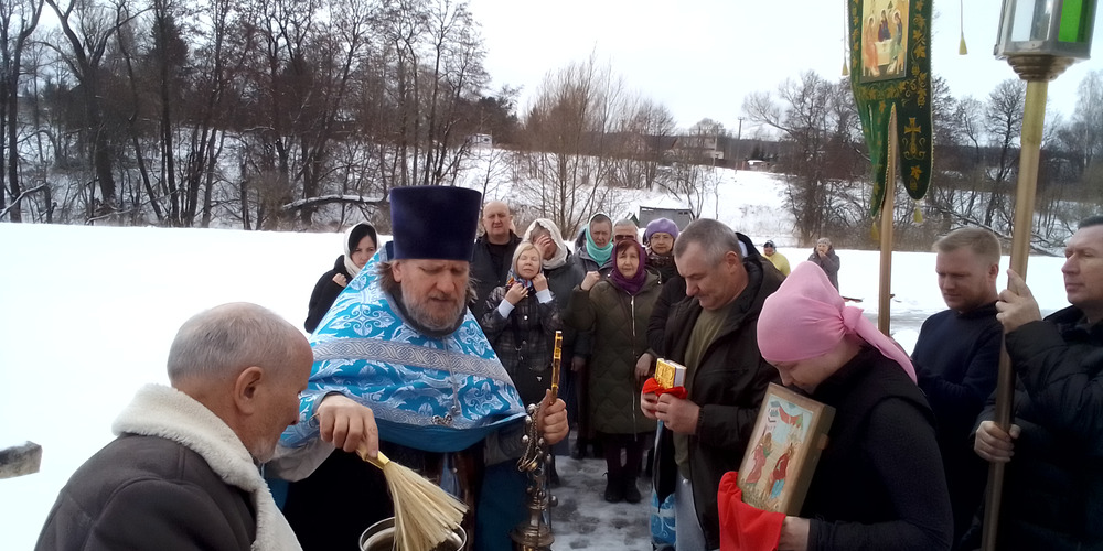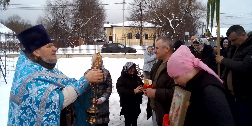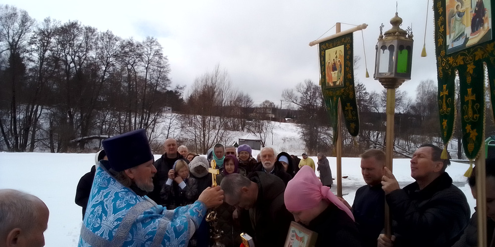 По окончании Литургии состоялся крестный ход вокруг храма с чтением Святого Евангелия и кроплением водой.