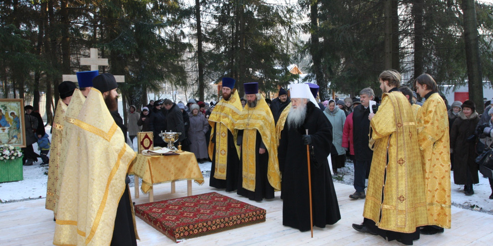 6 декабря 2010 года в день празднования памяти св. блгв. кн. Александра Невского и свт. Митрофана, еп. Воронежского митрополит Ювеналий совершил чин освящения закладного камня будущего каменного храма Живоначальной Троицы.