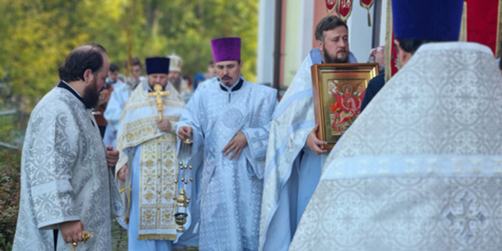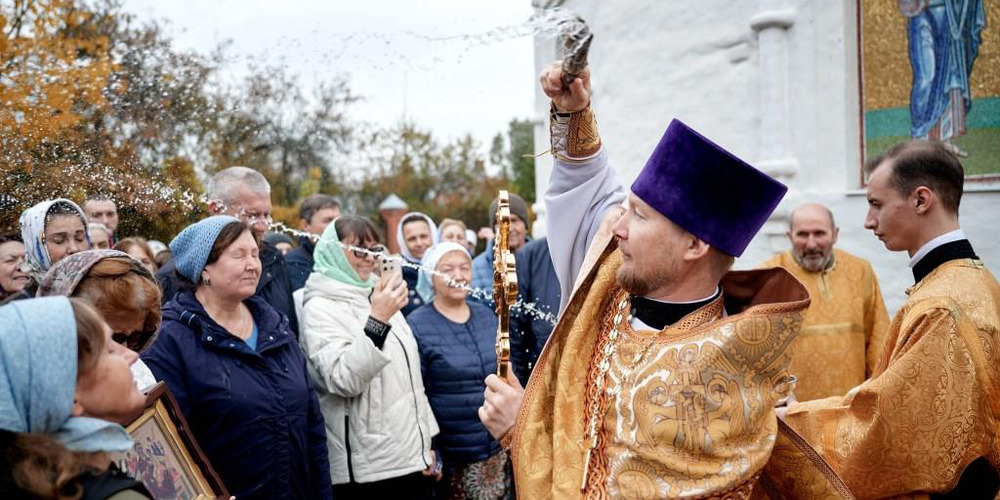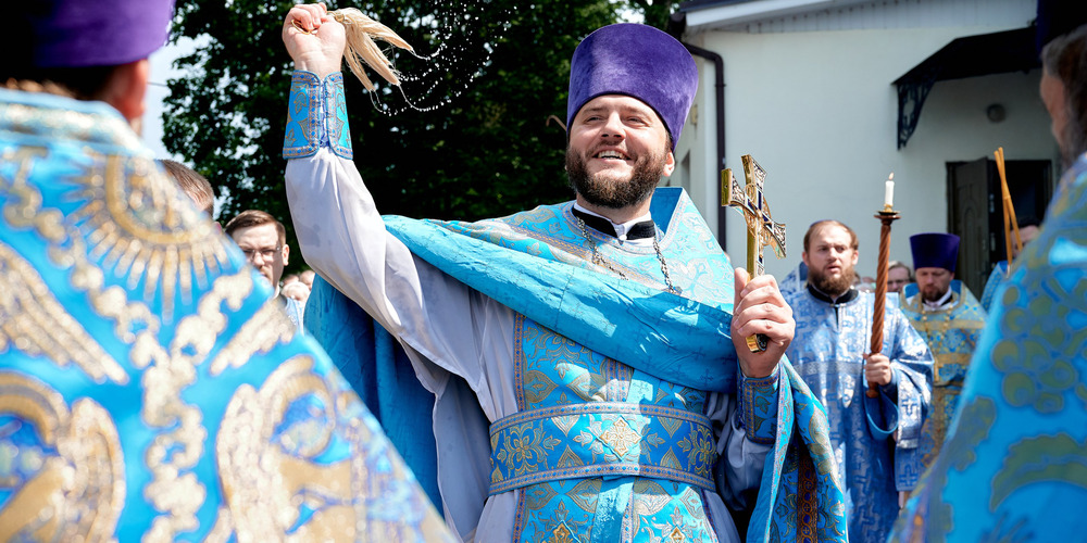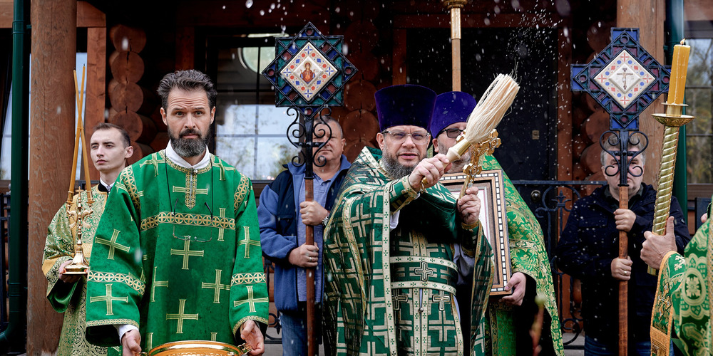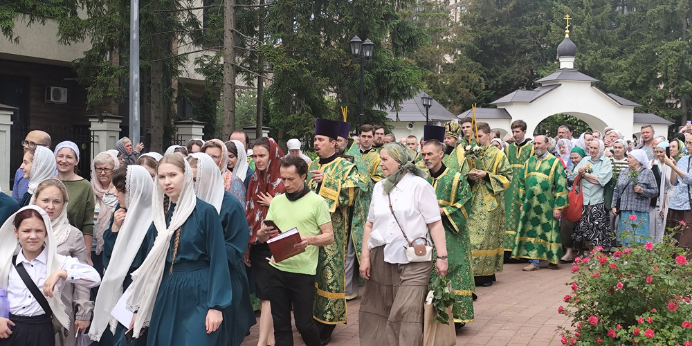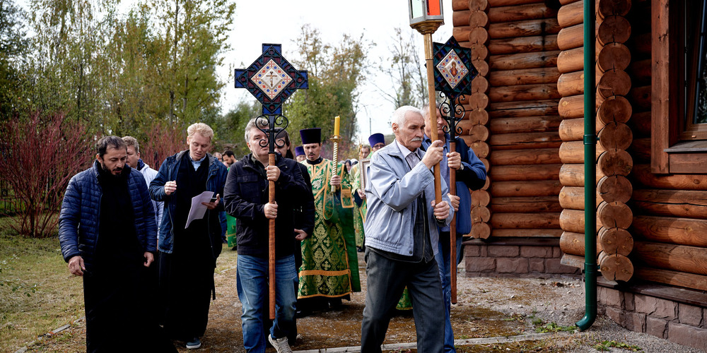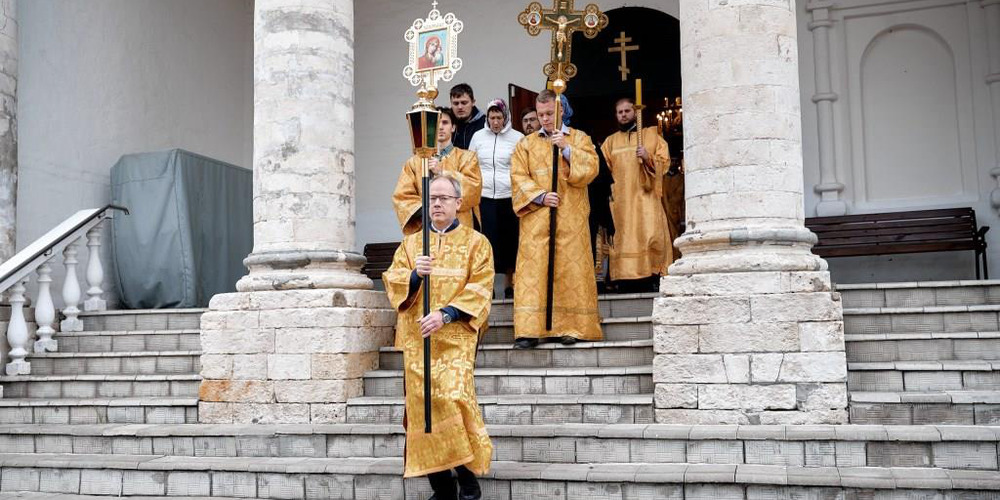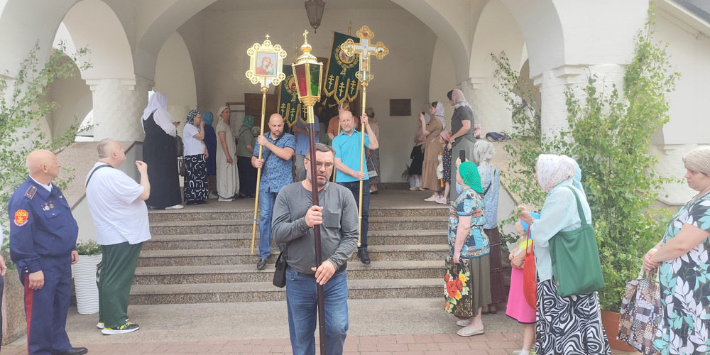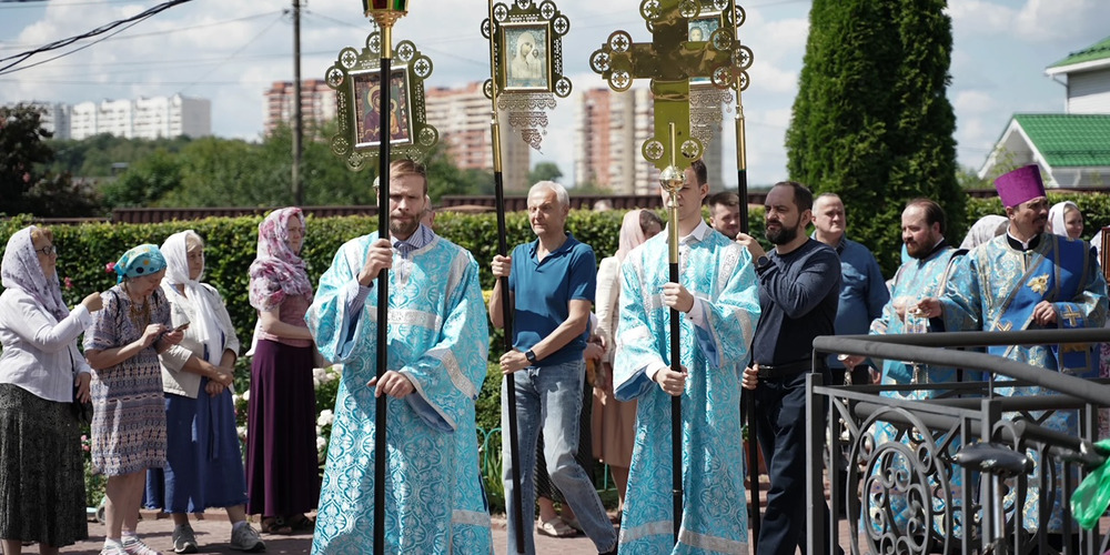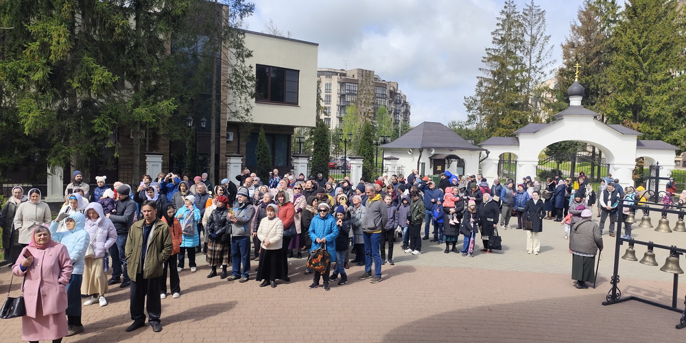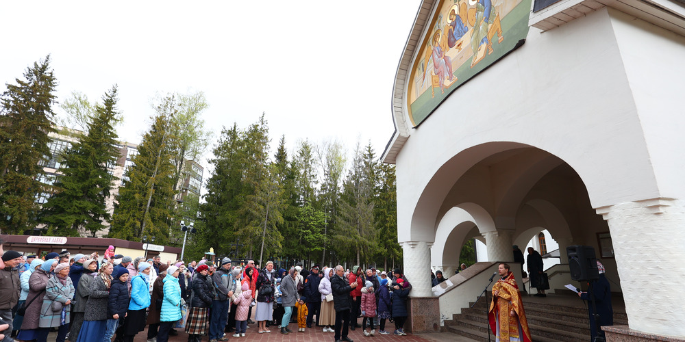 По завершении Литургии духовенство и прихожане совершили крестный ход вокруг храма, неся святые иконы и знамена, с чтением Евангелия и молитвами о мире, здравии и благословении всех живущих.