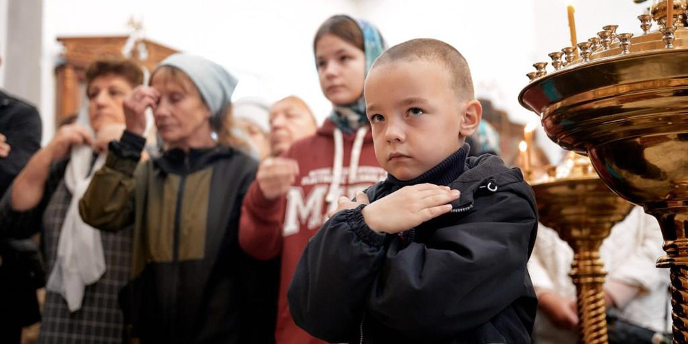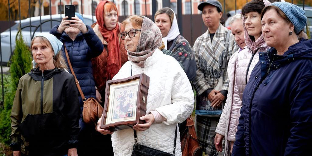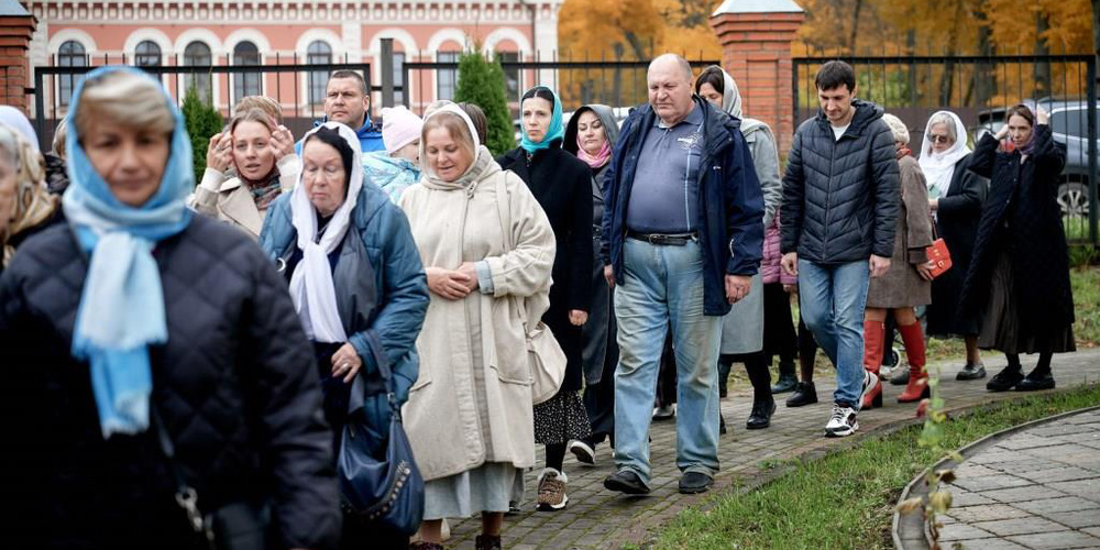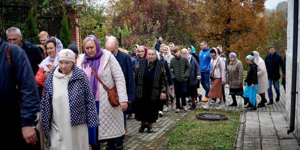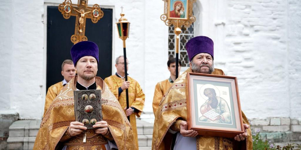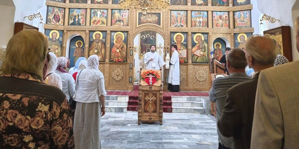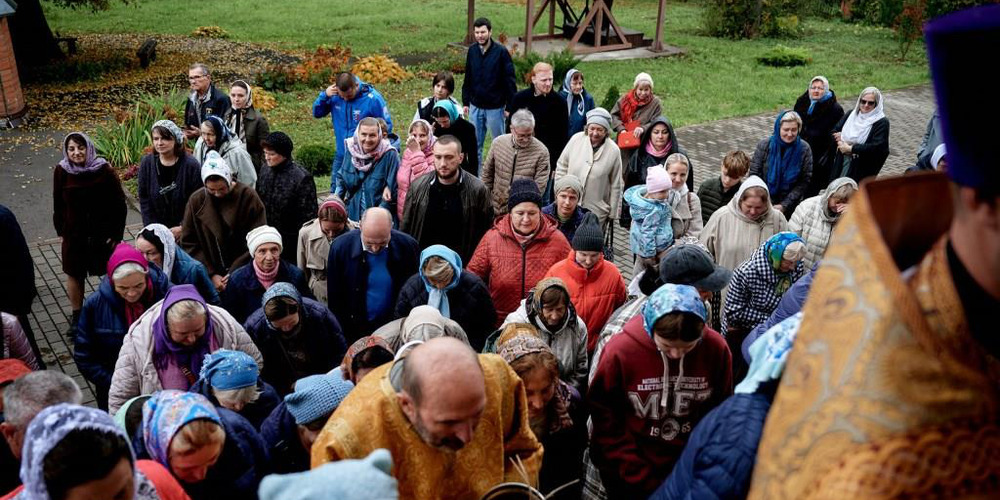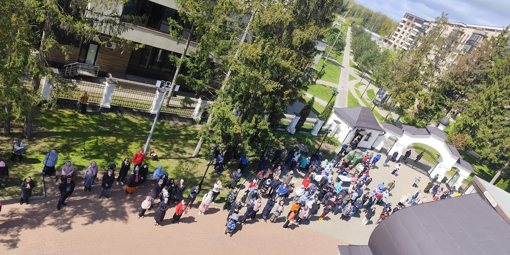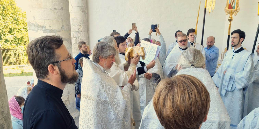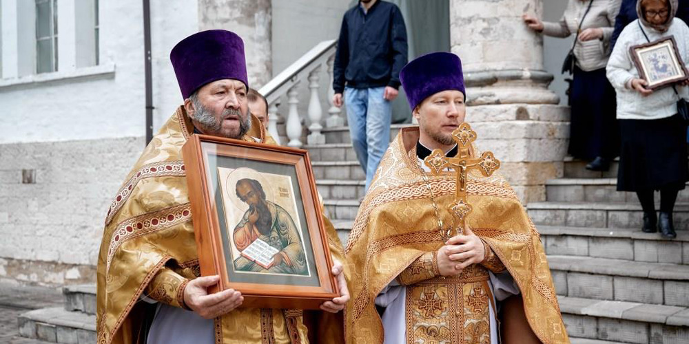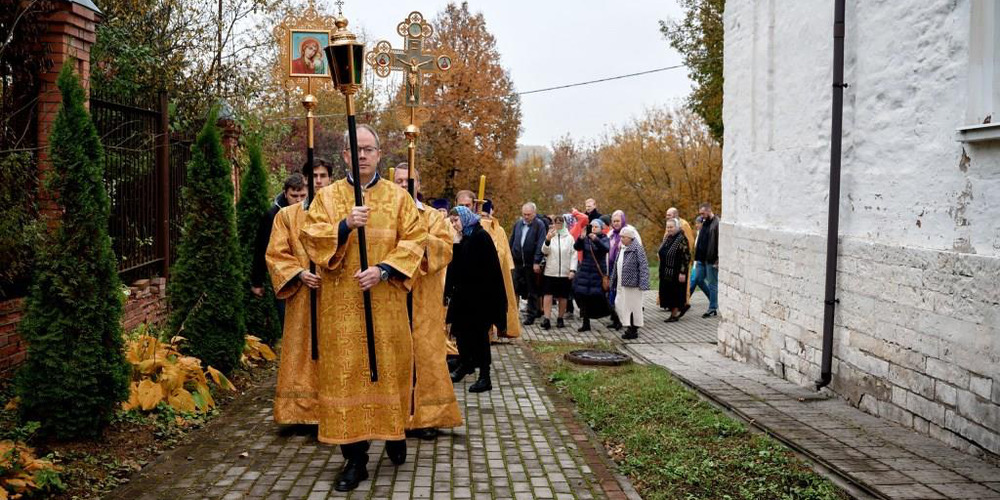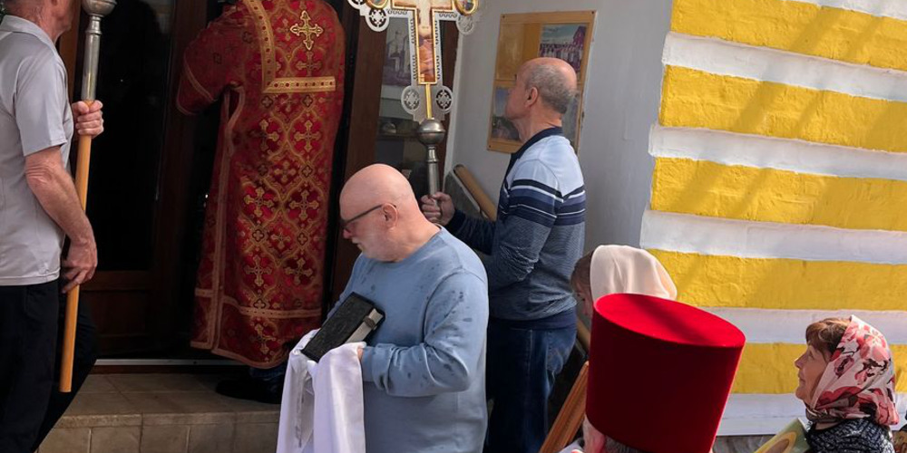 По завершении Литургии духовенство и прихожане совершили крестный ход вокруг храма, неся святые иконы и знамена, с чтением Евангелия и молитвами о мире, здравии и благословении всех живущих.