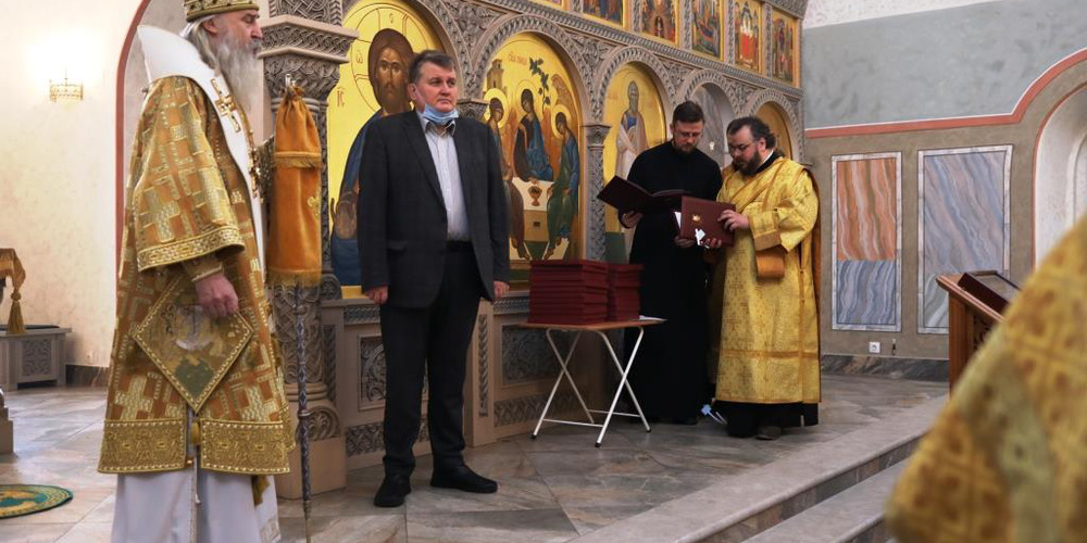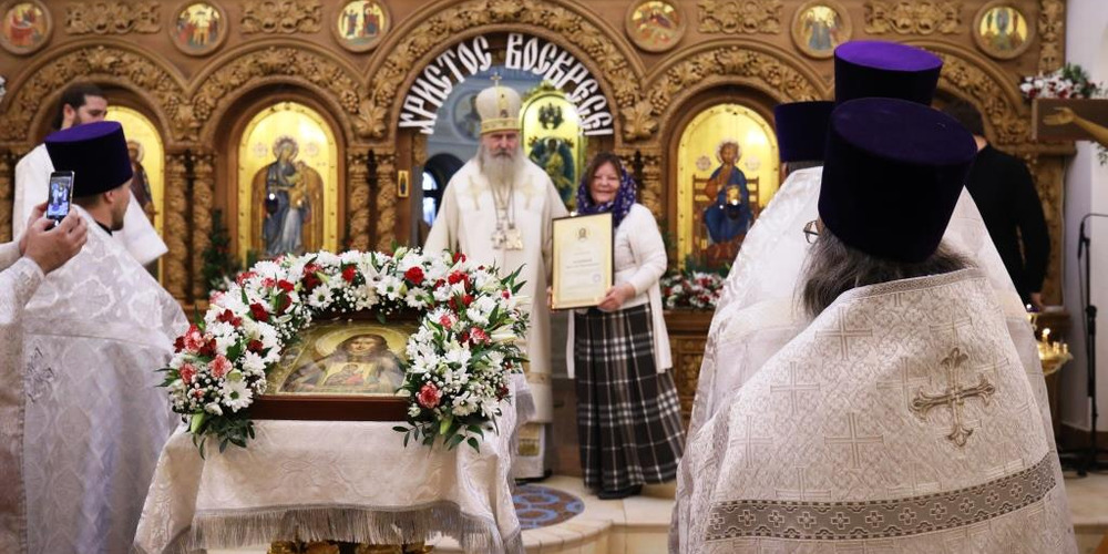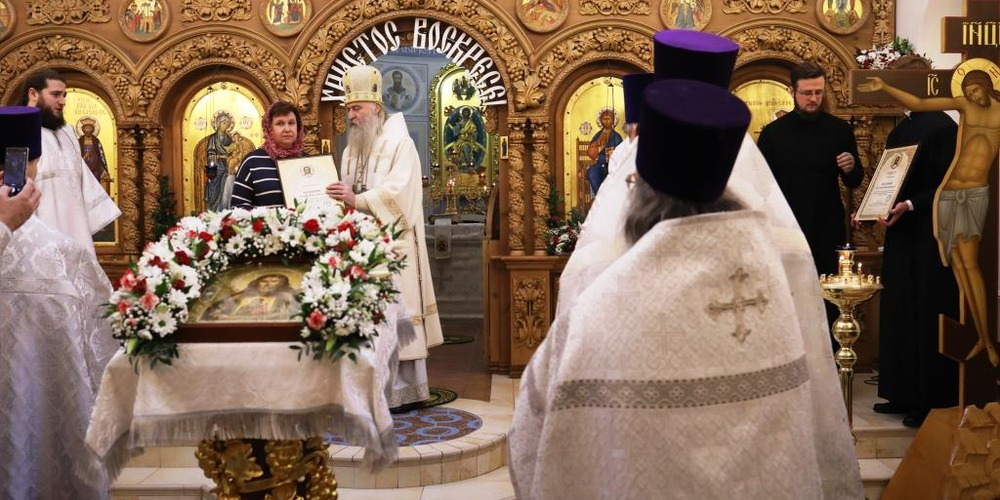 По окончании Литургии владыка Феогност обратился с архипастырским словом к прихожанам, по окончании которого были вручены Патриаршие награды потрудившимся в деле восстановления храма.