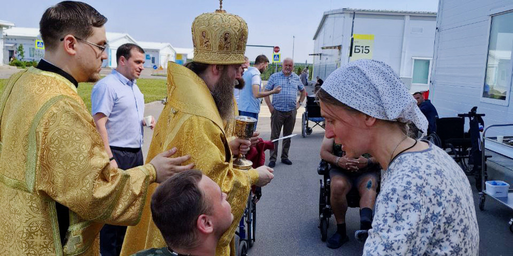 8 июля, в день памяти святых благоверных князей Петра и Февронии Муромских, состоялось праздничное богослужение в храме святителя Луки Крымского в центре инфекционных болезней Вороновский ТиНао, где сейчас проходят лечение и реабилитацию воины — участники СВО, которое возглавил викарий Святейшего Патриарха Московского и всея Руси, управляющий викариатством Новых территорий г. Москвы епископ Павлово-Посадский Силуан.