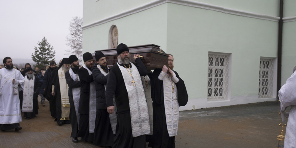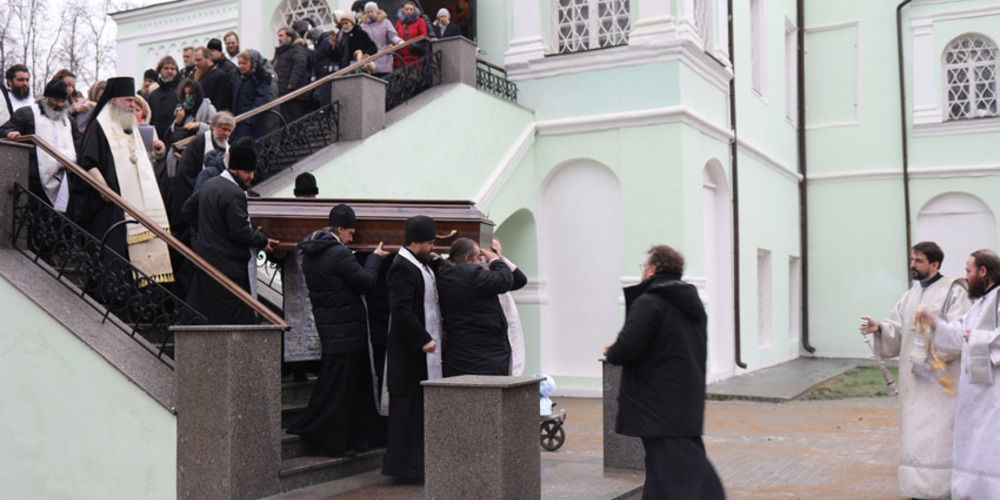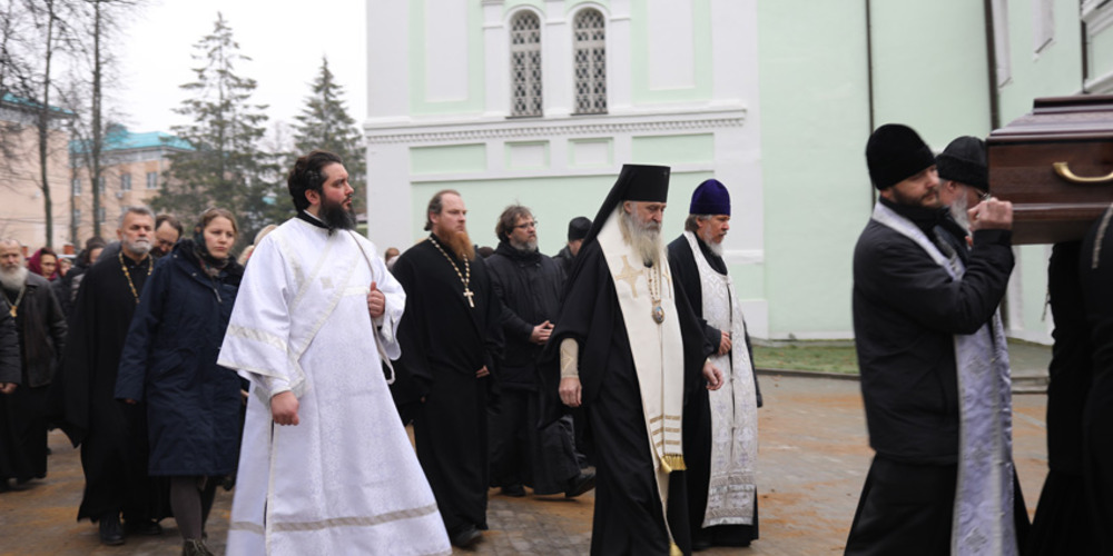 Его Высокопреосвященству сослужили: благочинный ставропигиальных приходов и Патриарших подворий вне города Москвы протоиерей Виктор Сандар, благочинные Новотроицкого церковного округа протоиерей Николай Степанычев, Одигитриевского церковного округа протоиерей Петр Панов и исполняющий обязанности благочинного Никольского церковного округа иерей Вадим Попов, столичное духовенство. Храм был наполнен верующими, пришедшими попрощаться с почившим пастырем.