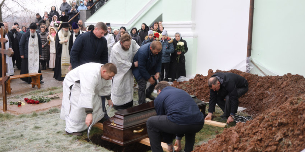 По завершении Литургии Чин отпевания по протоиерею Сергию Махонину совершил владыка Феогност, архиепископ Каширский, который обратился с проникновенным архипастырским словом к прихожанам, родным, близким и духовным чадам почившего священнослужителя.