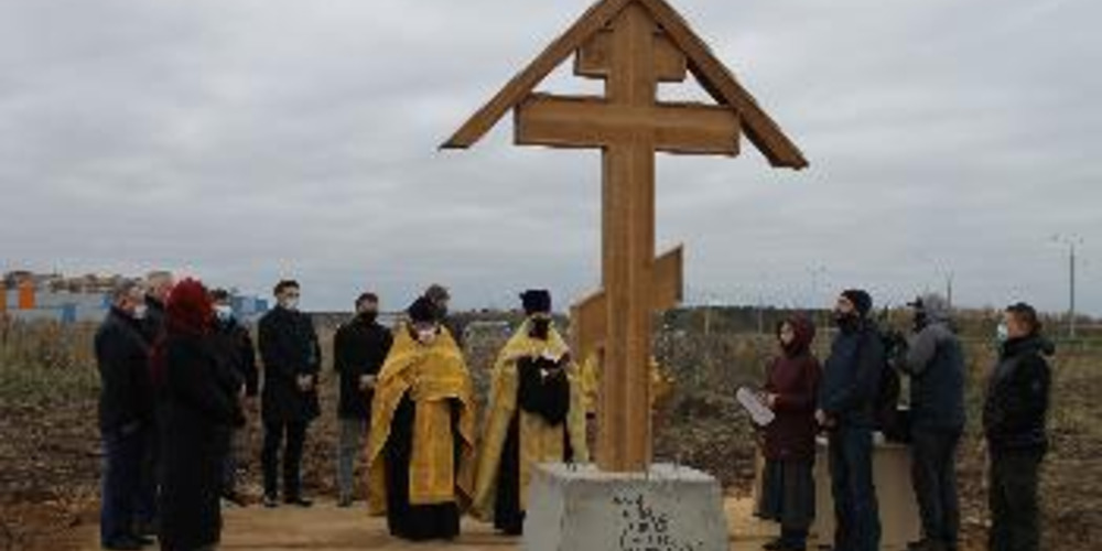 17 ноября в деревне Софьино Новотроицкого благочиния по благословению митрополита Каширского Феогноста был совершен молебен и чин освящения Поклонного Креста на месте будущего храма.