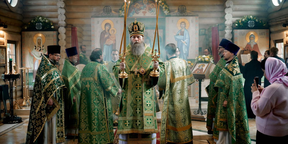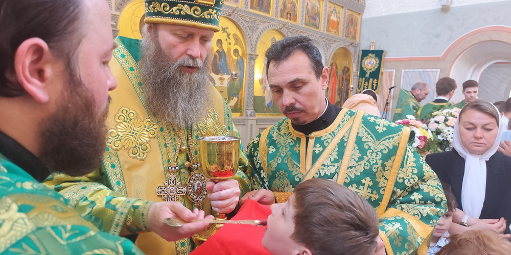 Божественную литургию возглавил владыка Феогност, архиепископ Каширский, викарий Святейшего Патриарха Московского и всея Руси, управляющий викариатством Новых территорий г. Москвы и настоятель храма Живоначальной Троицы в Троицке.