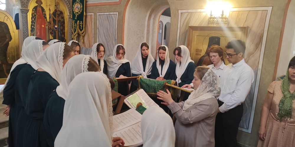 Богослужебные песнопения исполнил хор храма Живоначальной Троицы под управлением регента Панкратовой Варвары и молодежный хор Новотроицкого благочиния викариатства Новых территорий гор. Москвы под управлением регента матушки Екатерины Захаровой.