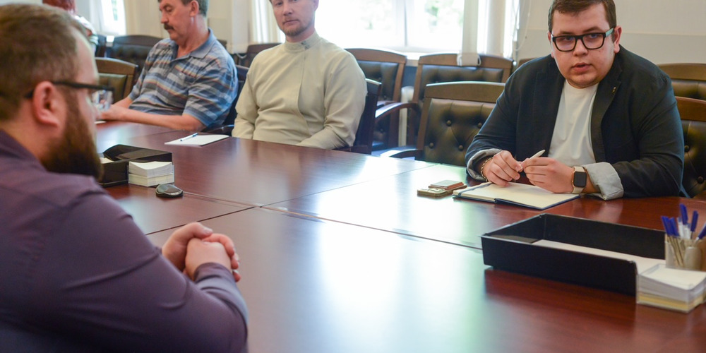 13 мая 2025 года у Главы городского округа Троицк Владимира Дудочкина состоялась встреча с участниками СВО и с представителями волонтёрского сообщества. В встрече принял участие настоятель храма Живоначальной Троицы протоиерей Николай Степанычев.