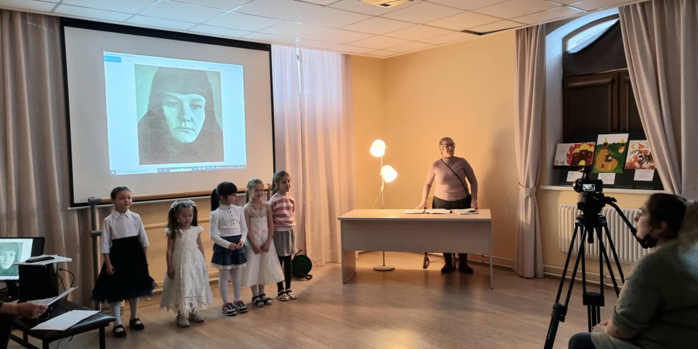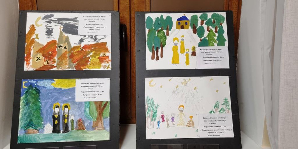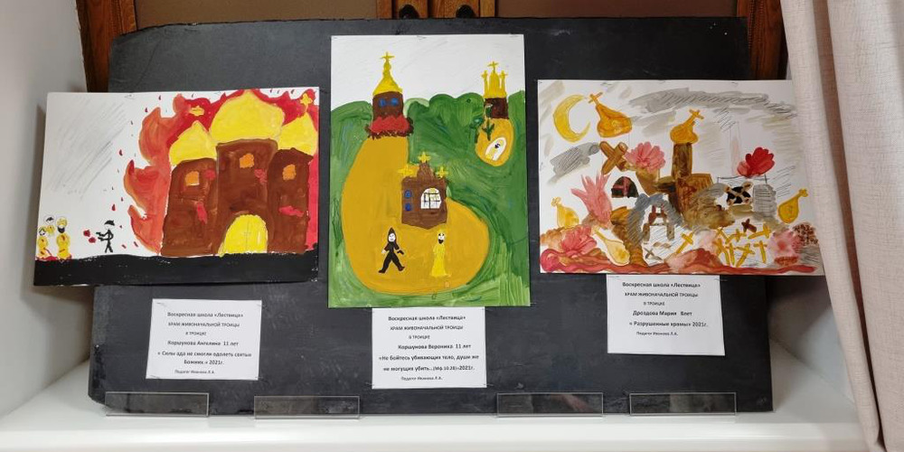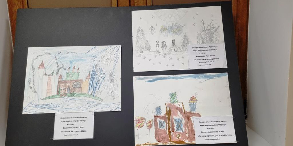 Для того, чтобы подготовить детей к этой выставке священник Павел Мальнов, клирик храма вмч. Георгия, провел предварительную беседу о подвиге Новомучеников и Исповедников Российских. Ребята вместе с батюшкой побывали на кладбище г. Московский у Креста на месте алтаря разрушенного Георгиевского храма, в котором служил священномученик Иоанн Васильев и отслужили панихиду.
