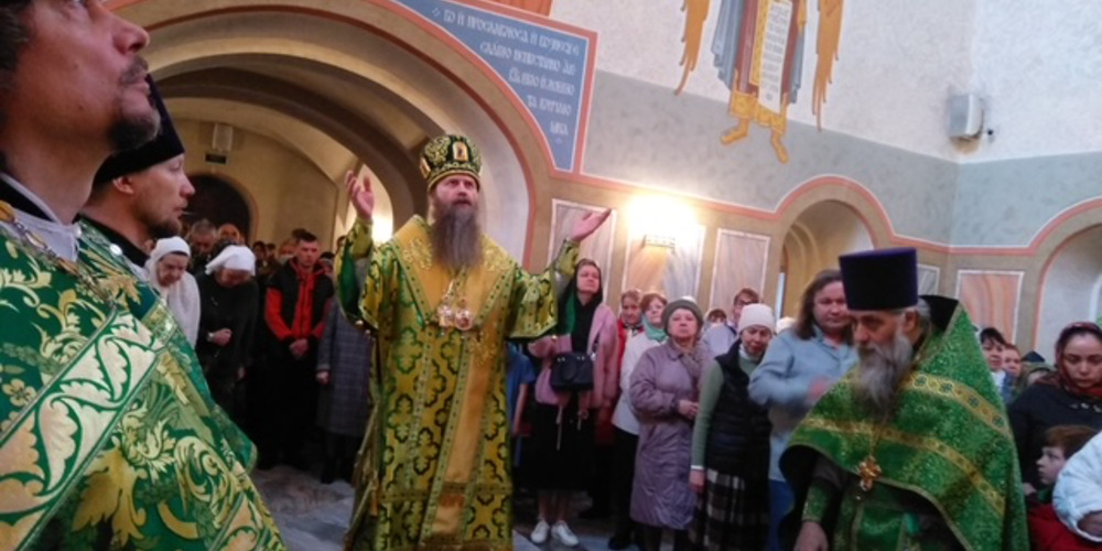 После крестного хода Владыка Силуан обратился с архипастырским словом поздравил всех собравшихся на Богослужение с престольным праздником, поблагодарил за совместную молитву.